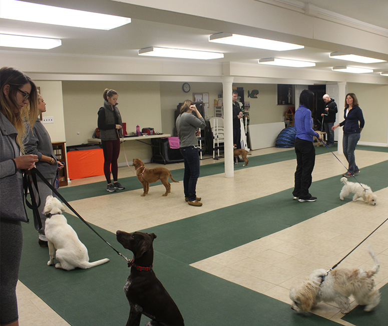 Join our Group Dog Training Classes held in our spacious Training Studio with rubber flooring, special equipment, natural light, and a fun and positive training space.